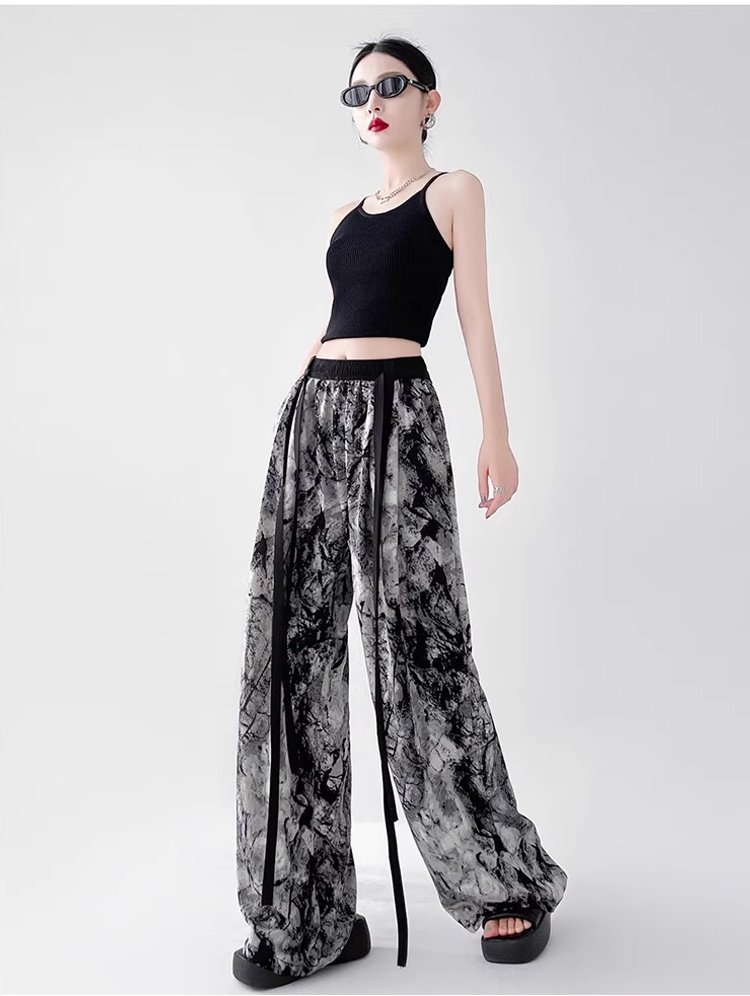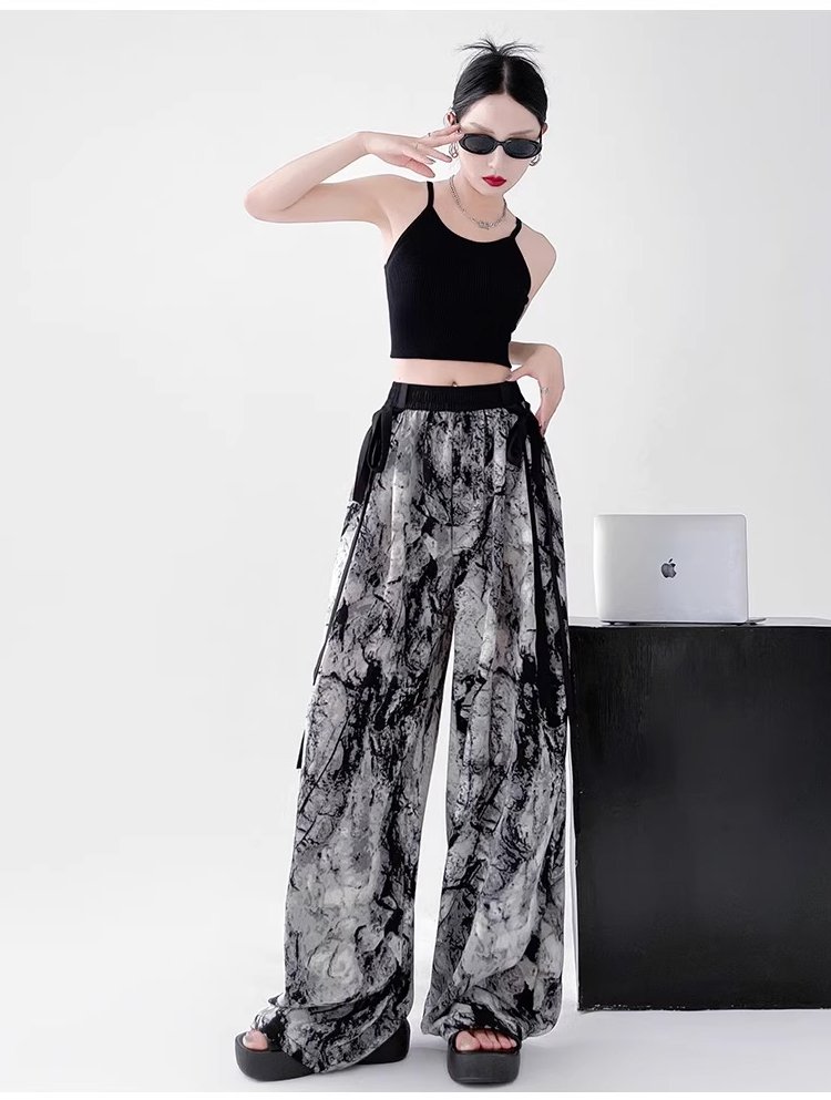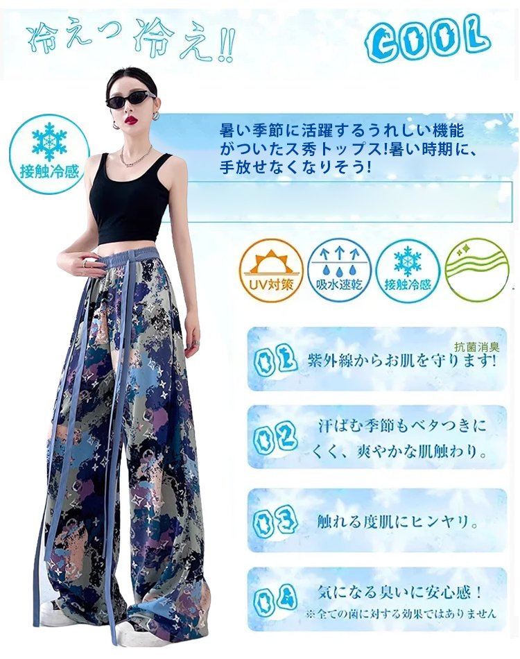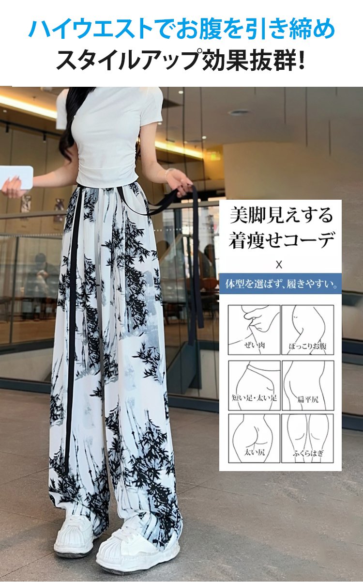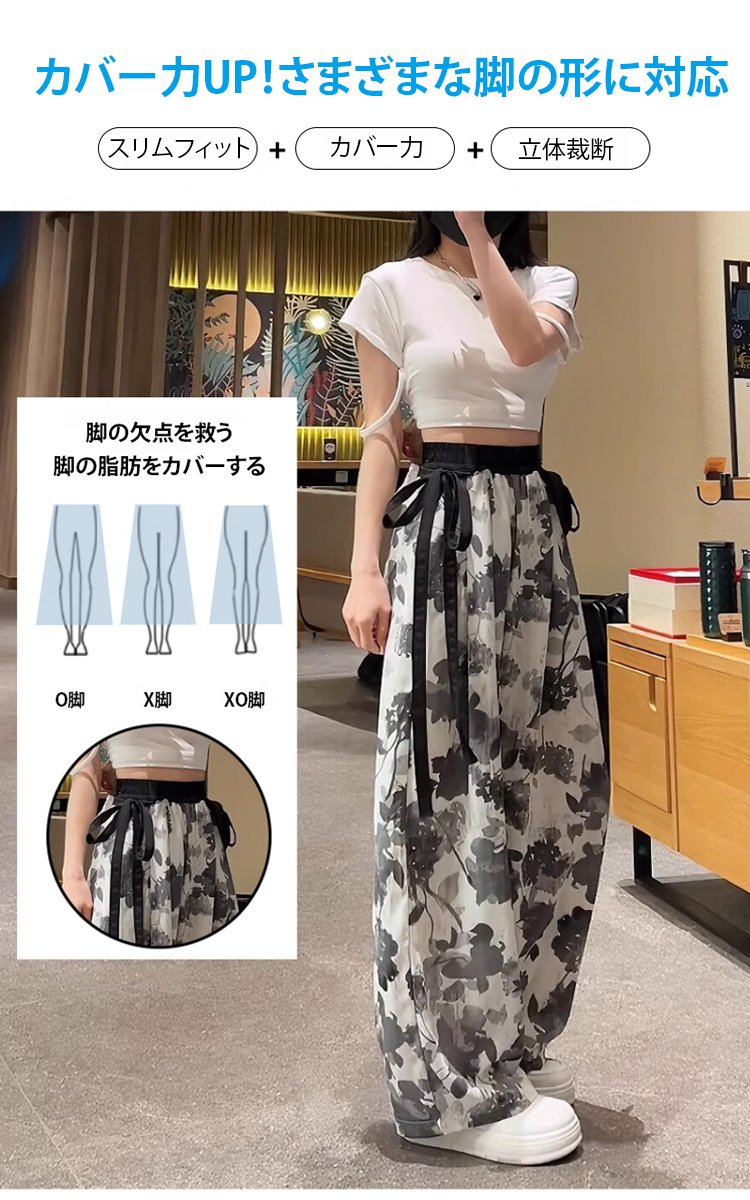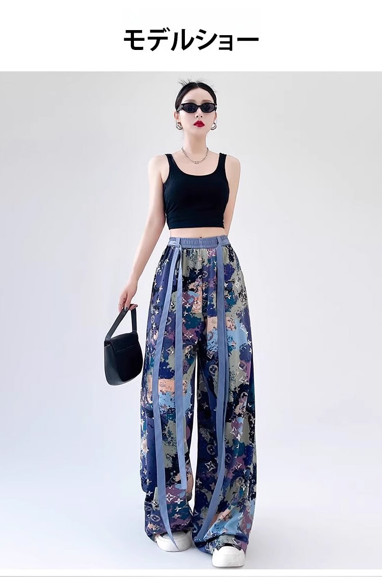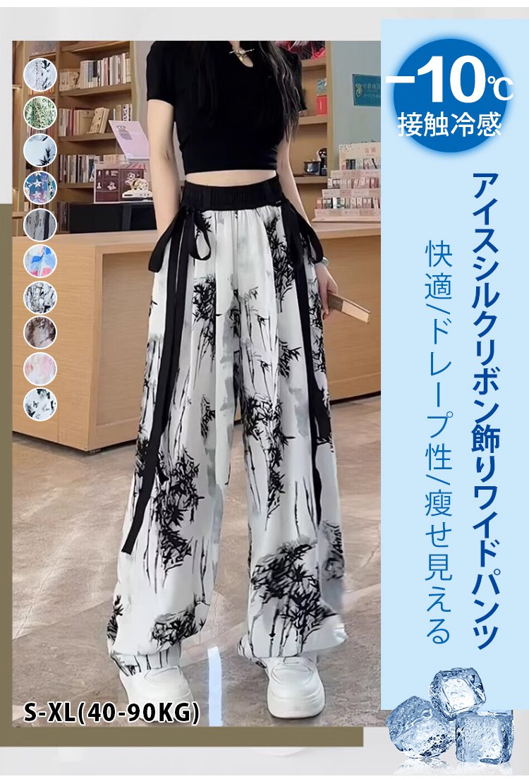アイスシルクリボン飾りワイドパンツ