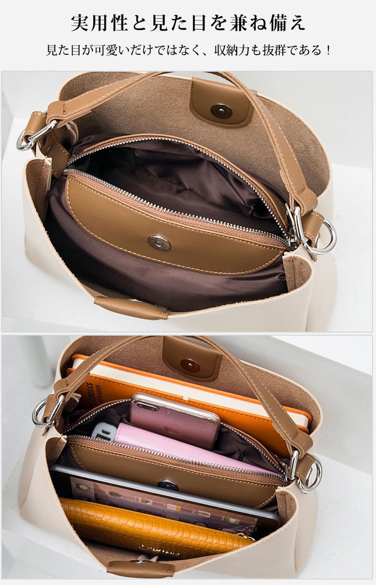 【レディースショルダーバッグ】手提げ 2way トレンド 収納力抜群 3色